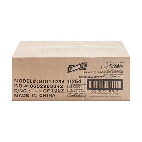Genuine Joe 1-ply Embossed Lunch Table Napkin, 13" x 11.25", White