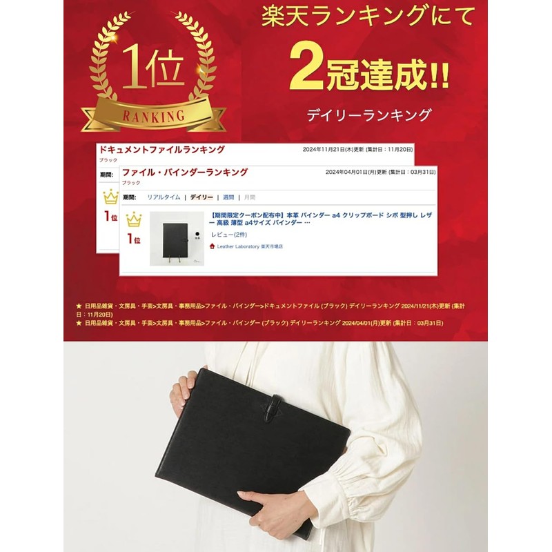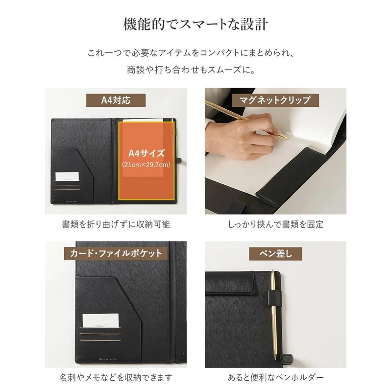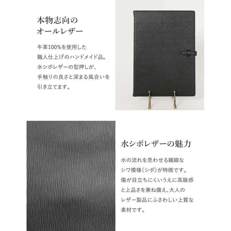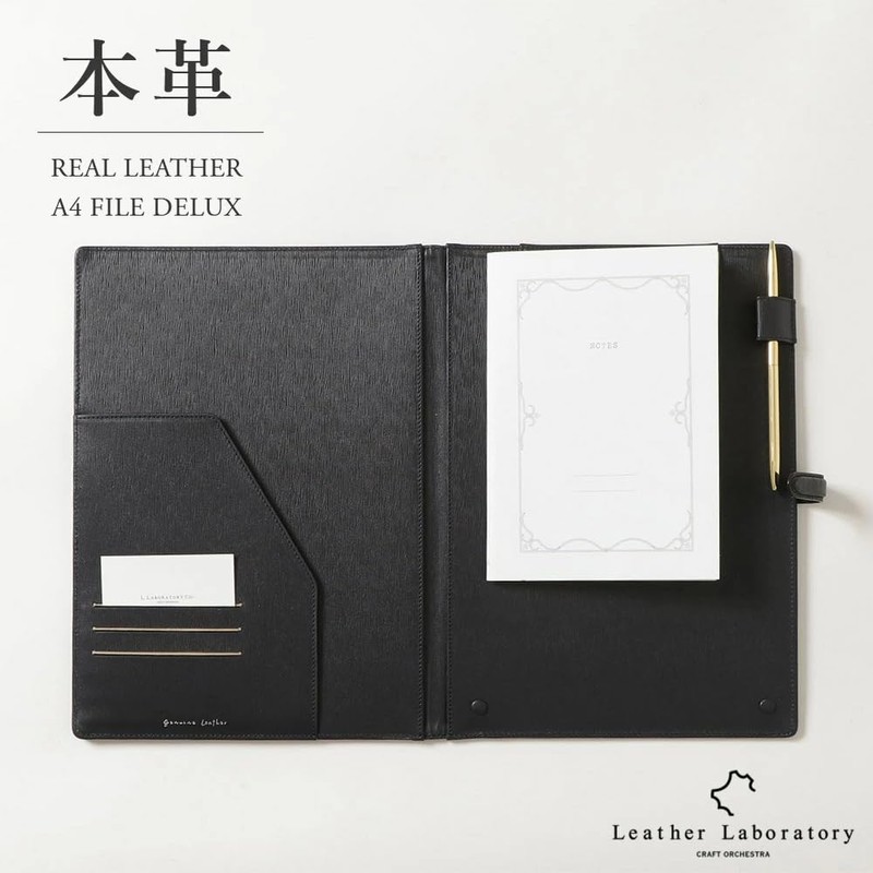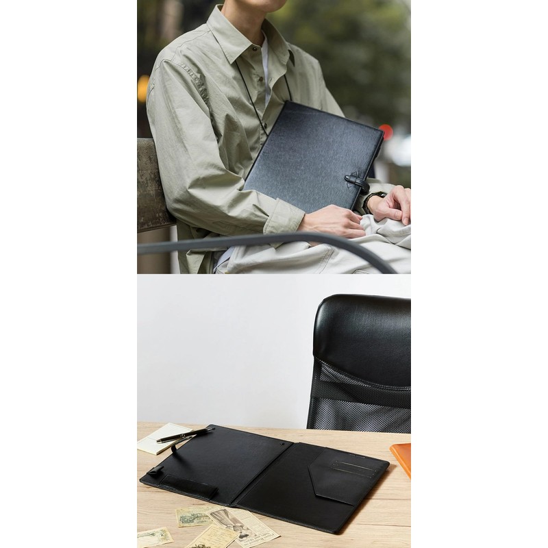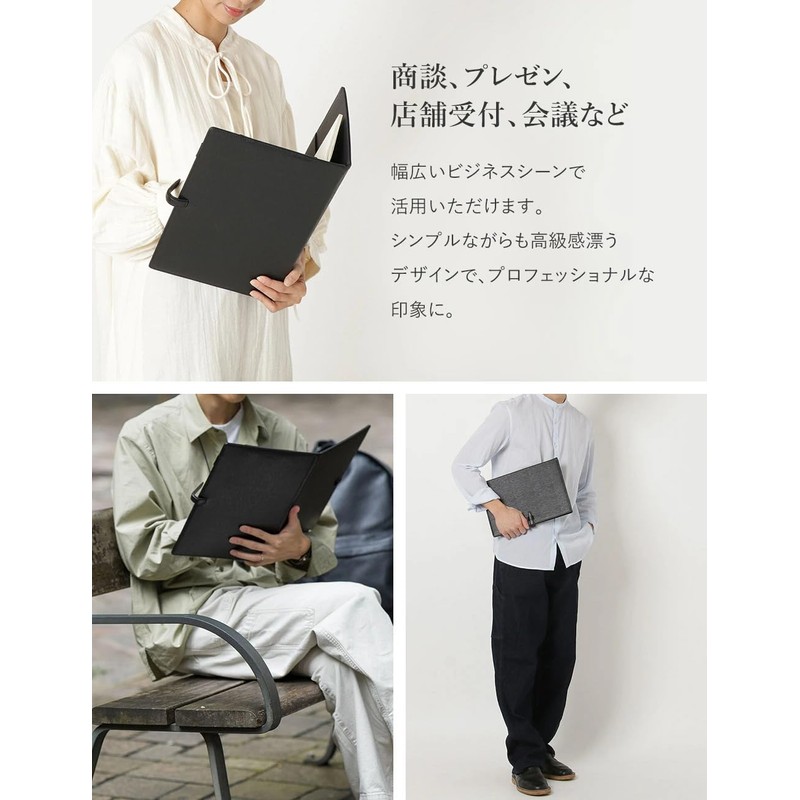 Genuine Leather Binder A4 Clipboard, Grain Embossed Leather, High Quality, Thin, A4 Size, Leather File, Document Case, Bifold Clip, Multifunction, File Board, Unisex, Black