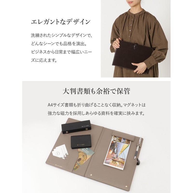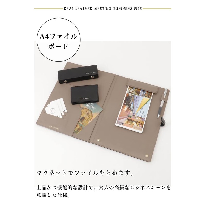 Genuine Leather Binder A4 Leather Cowhide Leather Business [Dark Brown] Clipboard Present Gift Gift Luxury Clip File Bifold Multi-functional Leather File Stylish Adult Work Board Sales Slim Thin Thin