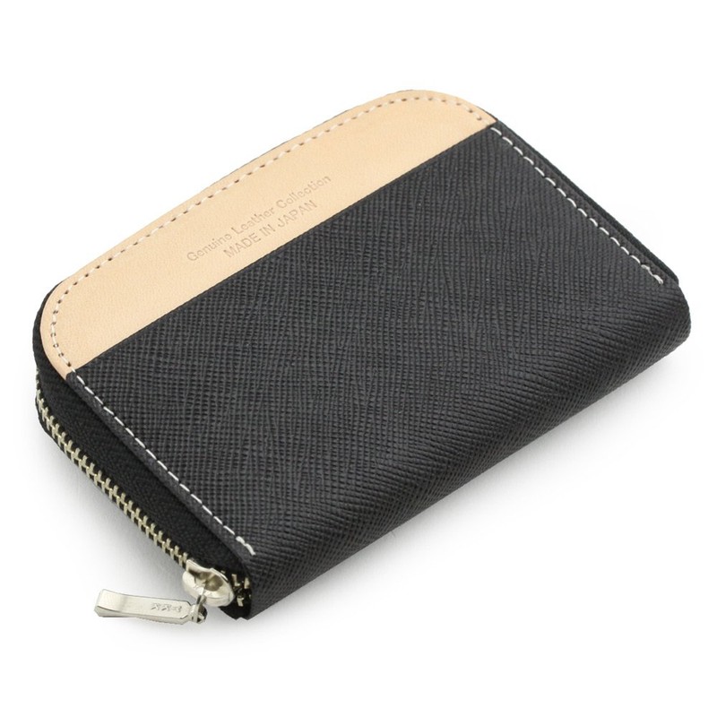 Genuine Leather Coin Purse, Zip Around, Prism Corners, Instep Embossed Cowhide, Made In Japan; - black -