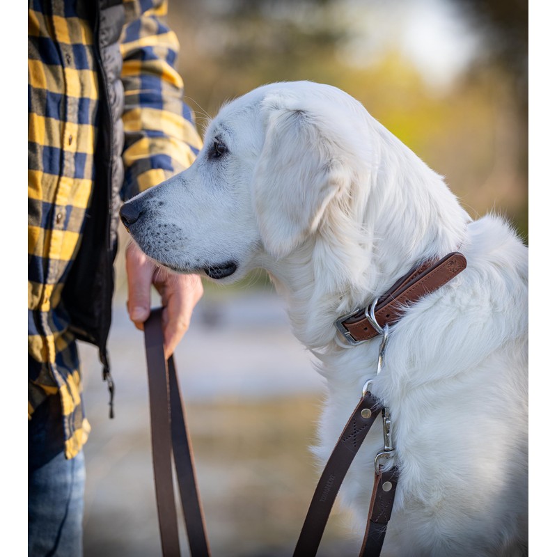 - Dog collar made of leather: the dog collar Pete is made of robust, double-layered buffalo leather. This is extremely durable, yet soft and gently adapts to the dog's neck. Buckle and fittings are made of high quality stainless steel. The material mix guarantees a perfect fit and a long service life