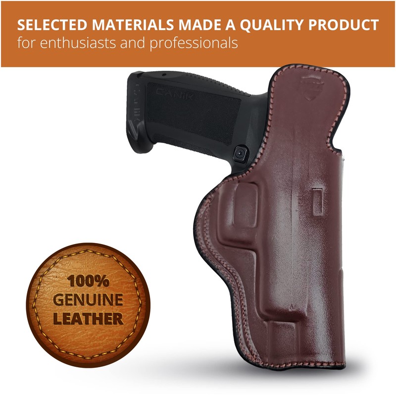- [MOLDED LEATHER HOLSTERS CONCEALED CARRY DESIGN] Our IWB conceal carry gun holster has an elegant design that features a high back that provides a shield between the body and the firearm. Gun holster for pistol Canik TP9 SFx