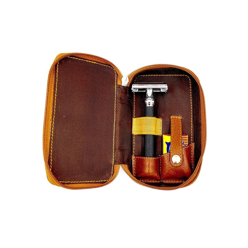 Genuine Leather Safety Razor & Double Edge Blade Protective/Travel Case from Parker Safety Razor - SADDLE BROWN -