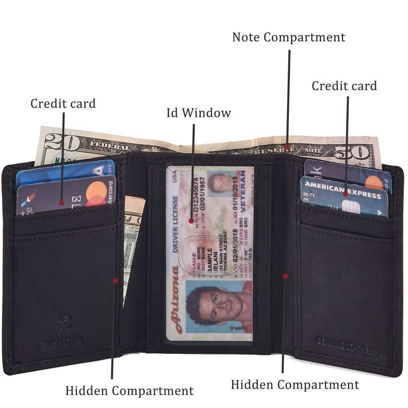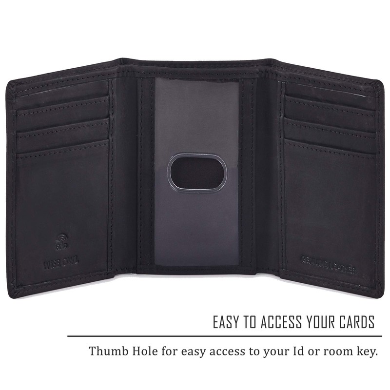 Genuine Leather Trifold Wallets for Men Travel Slim Front Pocket RFID blocking card Wallet (Black Crazy Horse, 4 x 3.25 x 0.75")