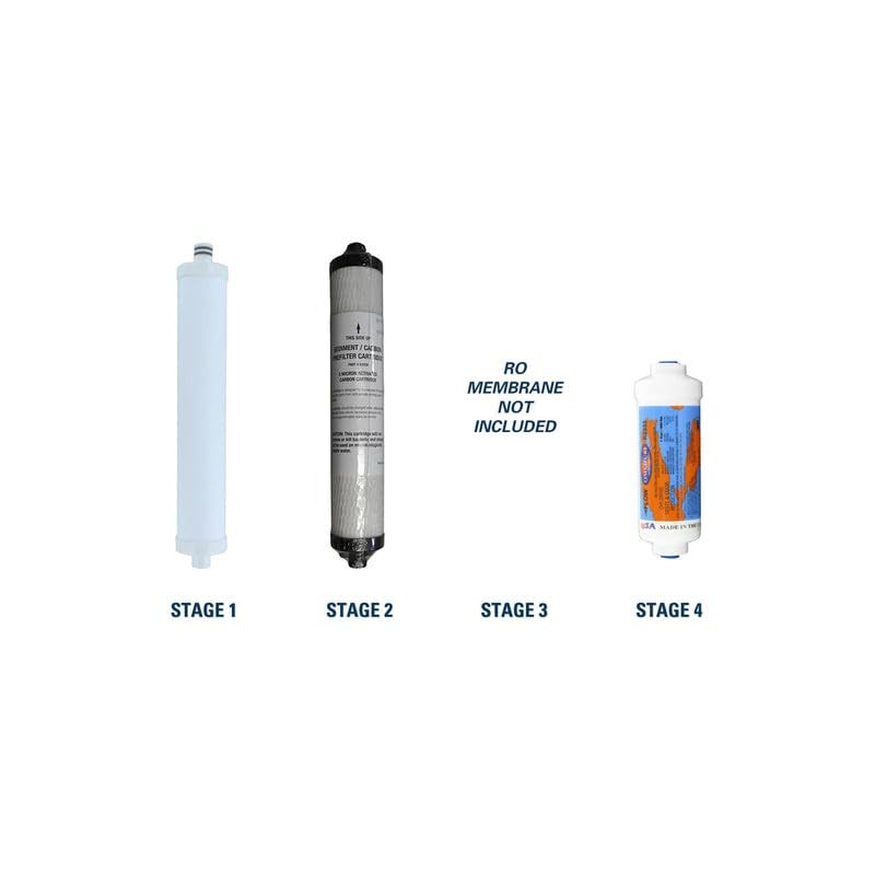 - 💧Premium Quality Replacements: STAGE 1 – 5 micron Sediment Pre-Filter (S7011) – Replace Every 12 Months; STAGE 2 – Sediment/Carbon Pre-Filter (S7028) – Replace Every 12 Months; STAGE 3 – Membrane NOT included – Replaced Every 24 Months; STAGE 4 – Inline Carbon GAC Post Filter (K2333-KK) – Replace Every 12 Months