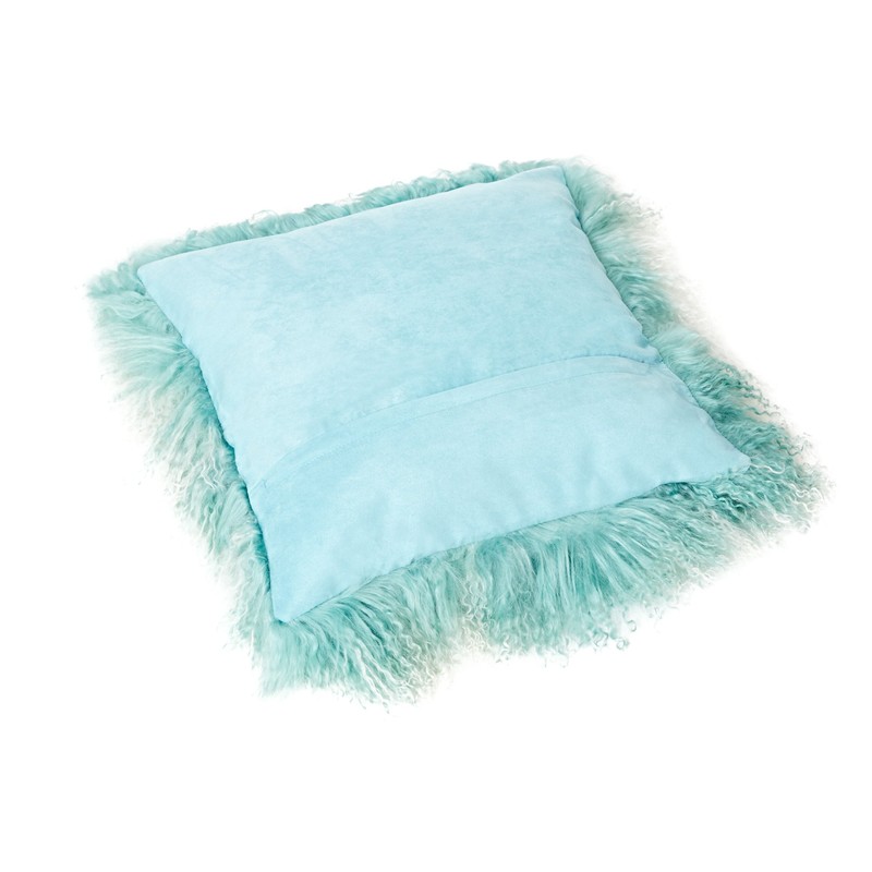 Genuine Mongolian Sheepskin Cushion Pillowcase 40x40cm (big variety of colours) JYB05 colour mint/ white (Tops)