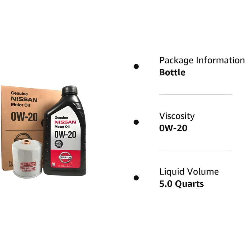 - Qty. 5 Quarts of Genuine Nissan Motor Oil 0W-20