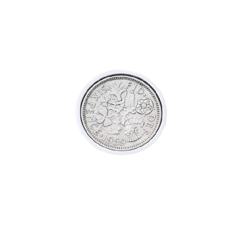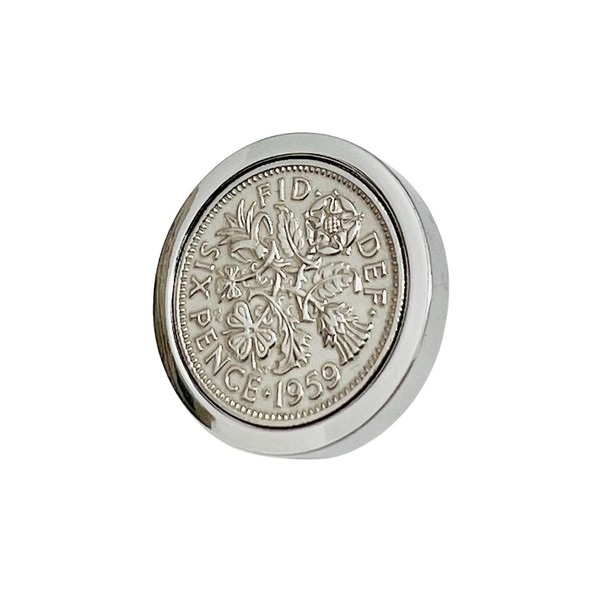 Genuine Polished 1959 Sixpence in Lapel Pin | 1959 anniversary, 66th birthday