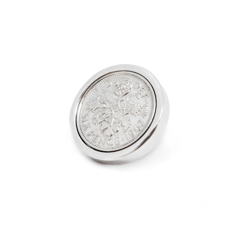 - This lucky sixpence lapel pin is the perfect finishing touch to any suit or jacket lapel, and ideal as a 66th Birthday present or 1959 anniversary reminder.