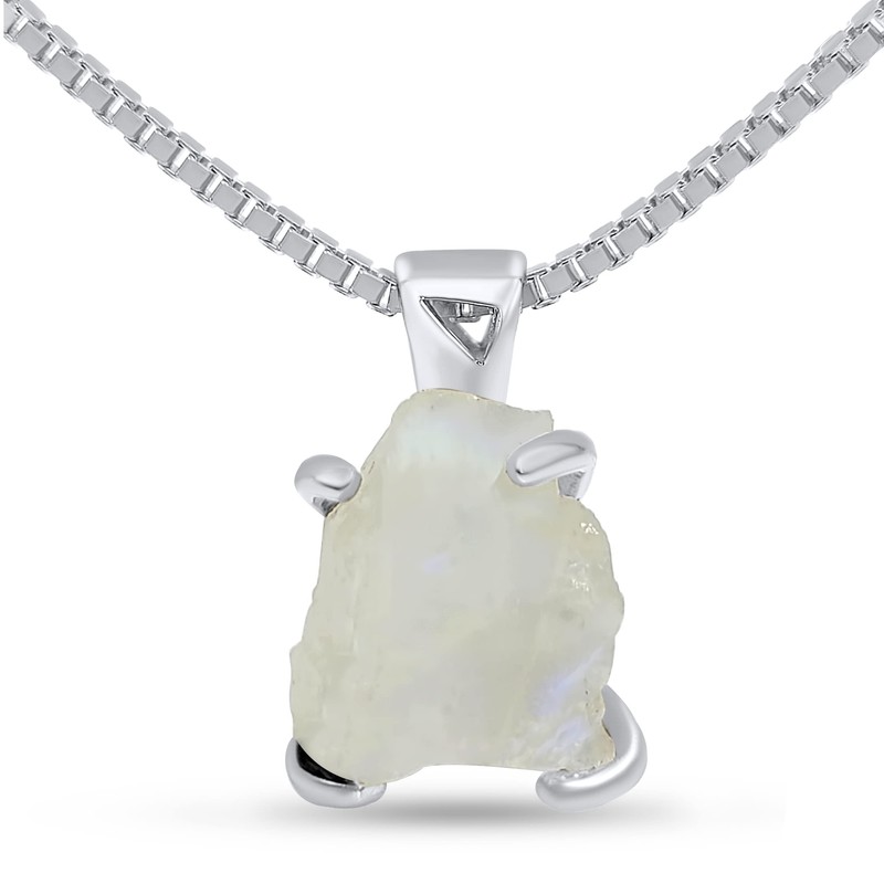 Genuine raw Moonstone gemstone pendant chain necklace, with 925 sterling silver real gold plated, real rough birthstone gift for her and him, Uniquelan Jewelry (moonstone)