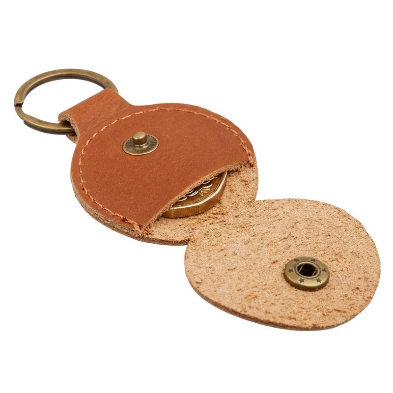 Genuine Tan Leather Pound Pouch Wallet Purse with a Trolley Token Fob Keyring Pound Pouch Keychain Key Ring Holder