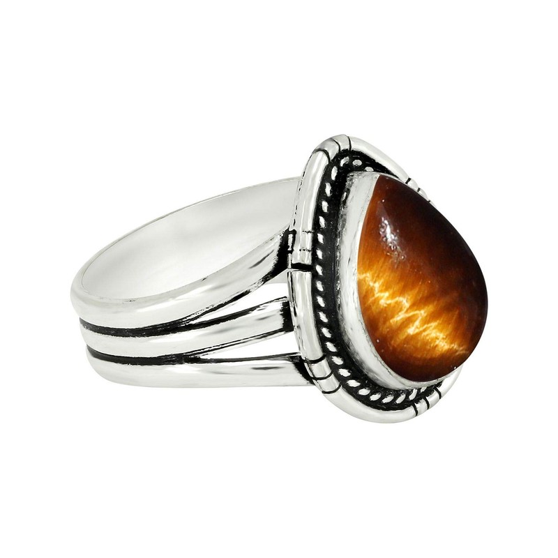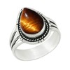 Genuine Tiger Eye 10x14mm Pear & .925 Silver Plated Handmade Solitaire Ring (Size-9)
