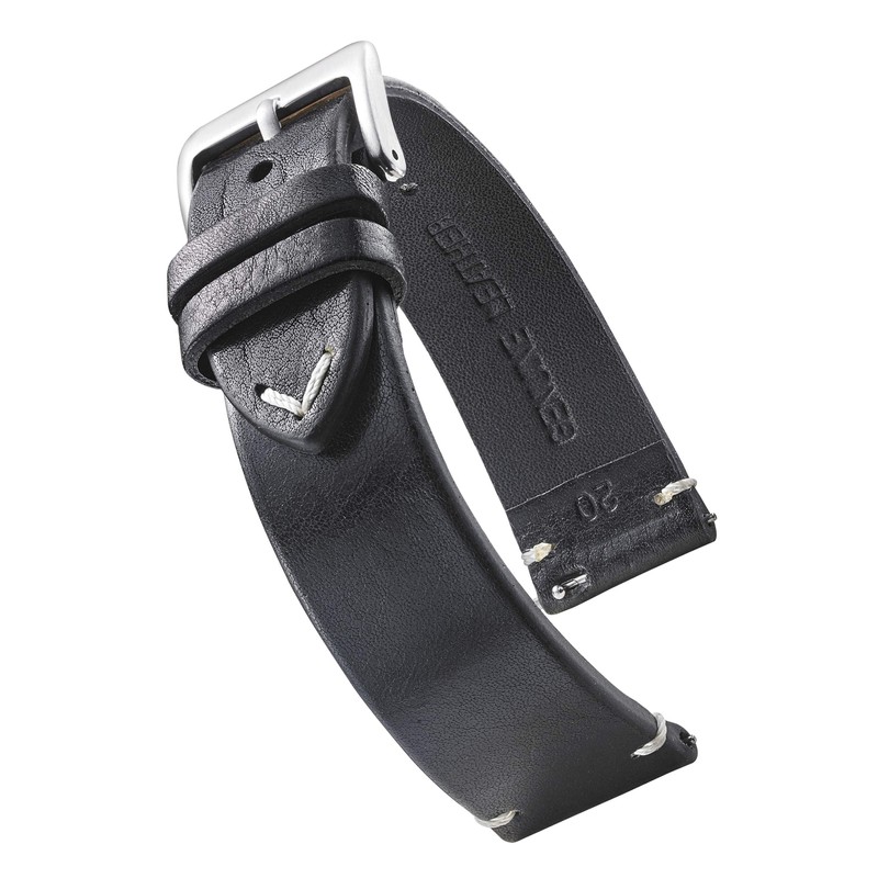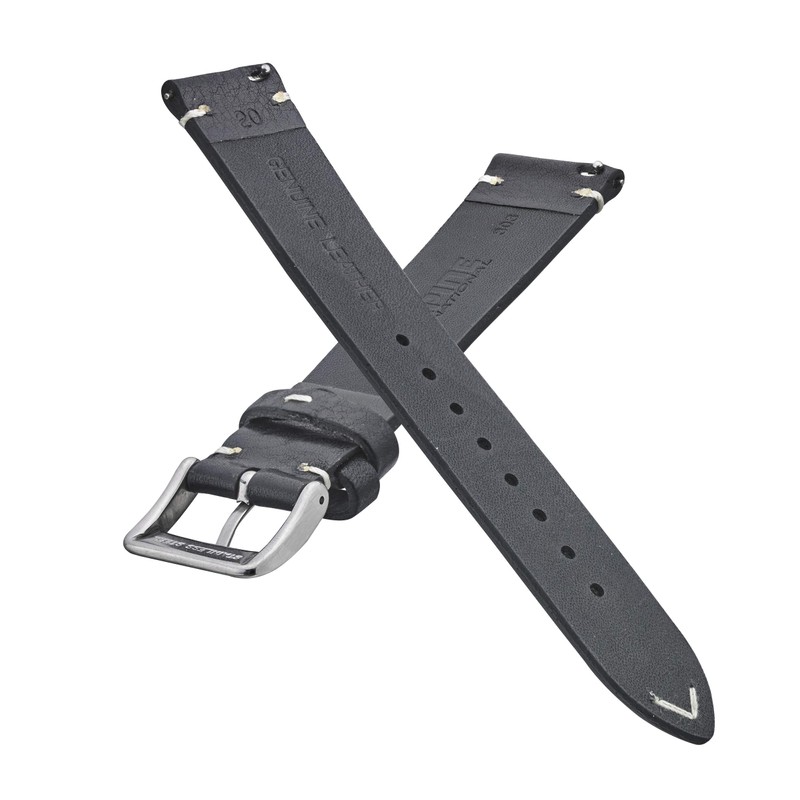 Genuine Vintage Leather Watch Band with Quick Release Spring Bars - Black - 18mm