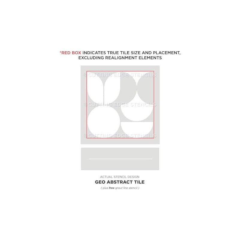 Our Geo Abstract Tile Stencil is a classic geometric tile design that looks simply stunning in greys or the striking black and white color combination! This geometric tile stencil pattern lets you rotate it in any direction to create a custom stenciled tile floor. This tile design has no registration marks, so you can align it any way you want and fit it into your existing tile. Geometric designs are never out of style. Our tile stencils are the perfect money saving alternative to the popular but expensive cement tiles. You can stencil right over your old dated tile floor or even over an ugly linoleum floor! With our tile stencils, it’s easy to create a dramatic black and white tile kitchen backsplash or an elegant stenciled floor. How to measure your tile: The size of our tile stencil designs are exactly as advertised. We currently offer them in 6", 8", 12", and 16". The grout line is NOT factored into those sizes. Before ordering, please measure your tile from tile edge to tile edge. Do NOT include the grout lines. Single overlay tile stencil Small: 6"x6" tile design size Medium: 8"x8" tile design size Large: 12"x12" tile design size Extra Large: 16"x16" tile design size Grout Line stencil is included for FREE!