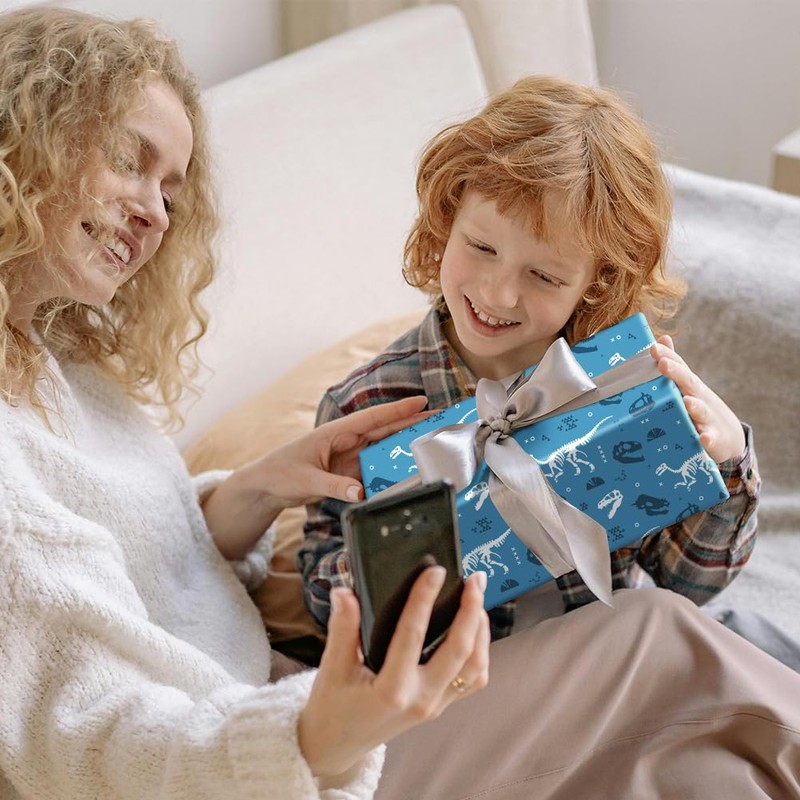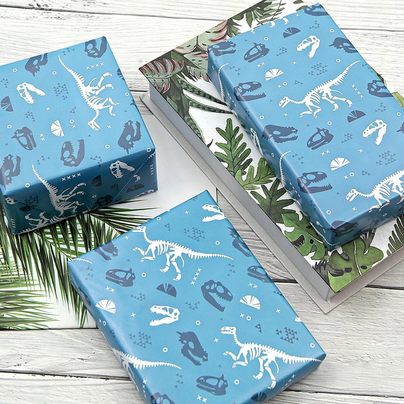 - 🦕【Brilliant Quality and Texture】:Vibrant colorful colours printed on premium 70-lb glossy paper. 4 Folded Flat Sheets of Premium Gift Wrapping Paper. Wrap your gifts in fun and vibrant paper using White Dinasaur Fossil and Bone Blue Gift Wrap.