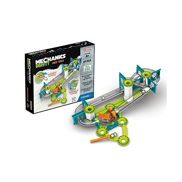 Geomag - Mechanics Gravity Race Track - Educational and Creative Game for Children - Magnetic Building Blocks, Race Track with Magnetic Blocks, Recycled Plastic - Set of 67 Pieces
