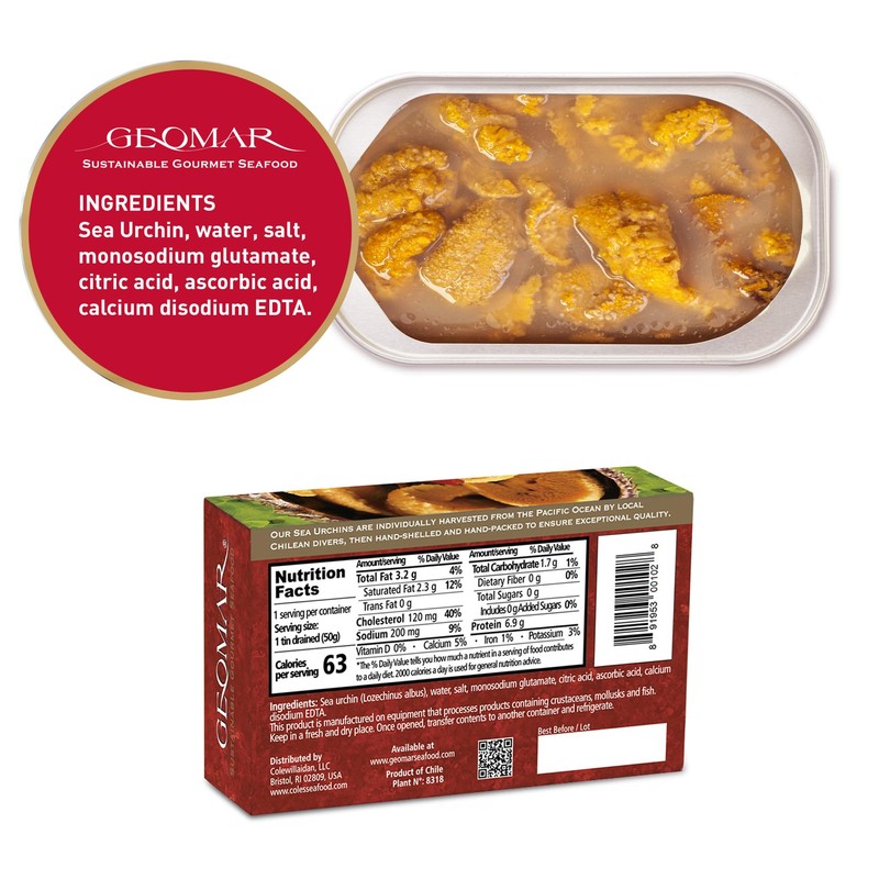 GEOMAR Sea Urchin in Brine - Chilean Sea Urchin, Gourmet Tinned Ready To Eat Seafood, Delicacy Gourmet Pantry Staples, Single Can - 3.17 oz