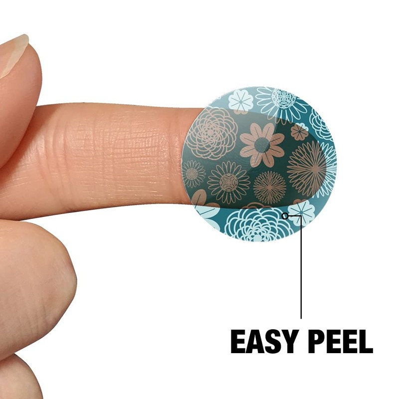- EASY PEEL & STICK: Includes 50 clear stickers. Sticker size 1". Made from premium vinyl for long-lasting saturated images resistant to peeling and fading.