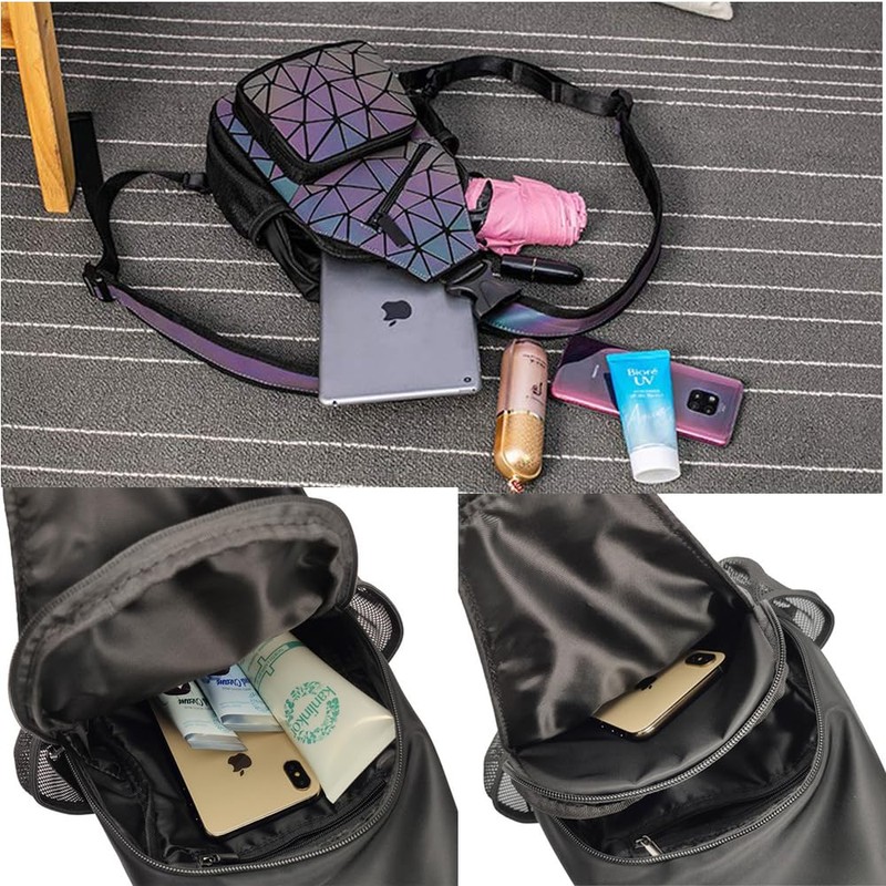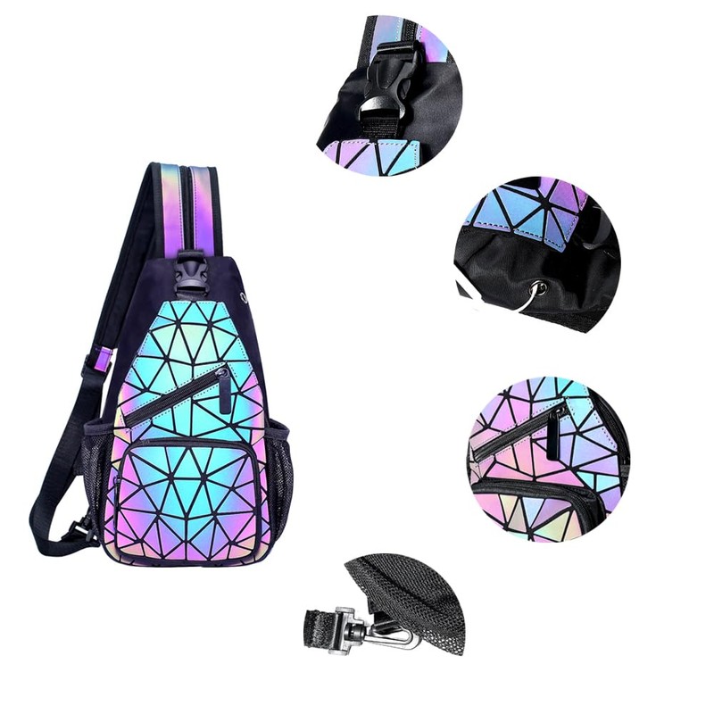 Geometric Luminous Backpack Holographic Sling Bag Reflective Chest Bag for Women Fanny Pack Hiking Knapsacking Colorful Belt Daypack With Wallet