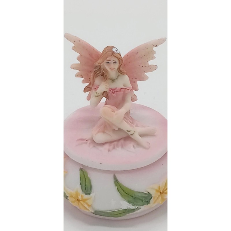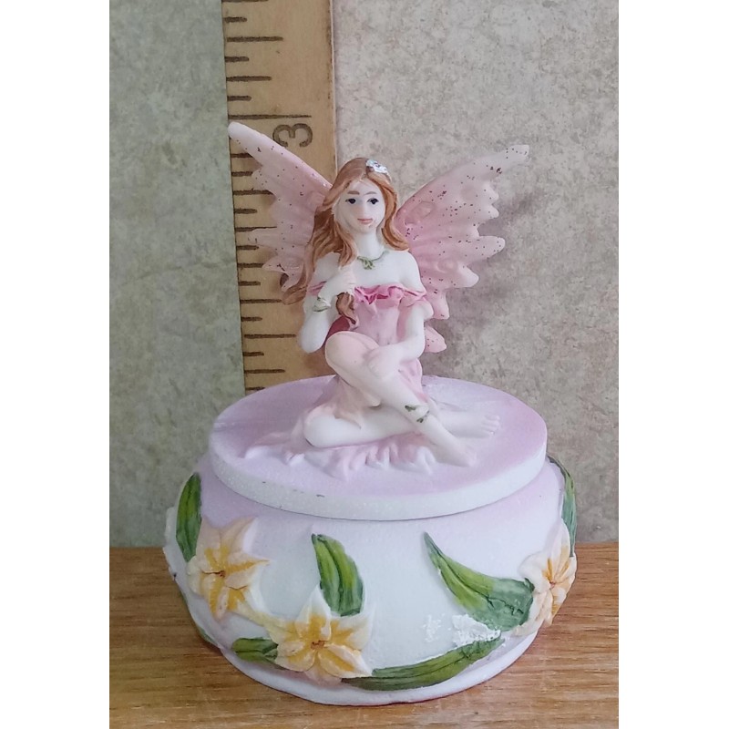 George Chen Mini Pink Flower Fairy Sitting on a Trinket Box
