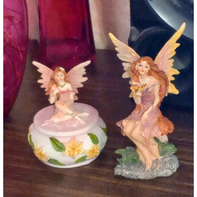 This Beautiful Mini Pink Flower Fairy Sitting on a Trinket Box has the finest details and highest quality you will find anywhere! Her power of blushing blooming flowers is held from within the box she rests on. Rings, Earnings, Stash box and more.