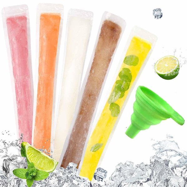 - ✦【Material】: Nuestras bolsas de paletas están hechas de materiales de alta calidad, portátiles y fáciles de almacenar, lo que hace que verter sea muy fácil. Las bolsas de paletas de bricolaje contienen 50 piezas, cada una con un embudo de silicona. 5 .5cm x 28cm。 (Nota: No congele demasiado y asegúrese de dejar 15 mm de espacio en la parte superior).
