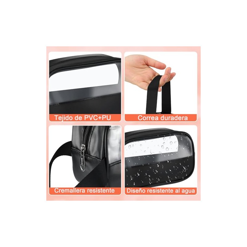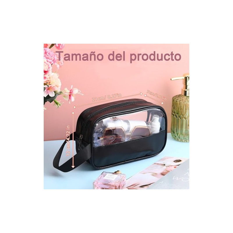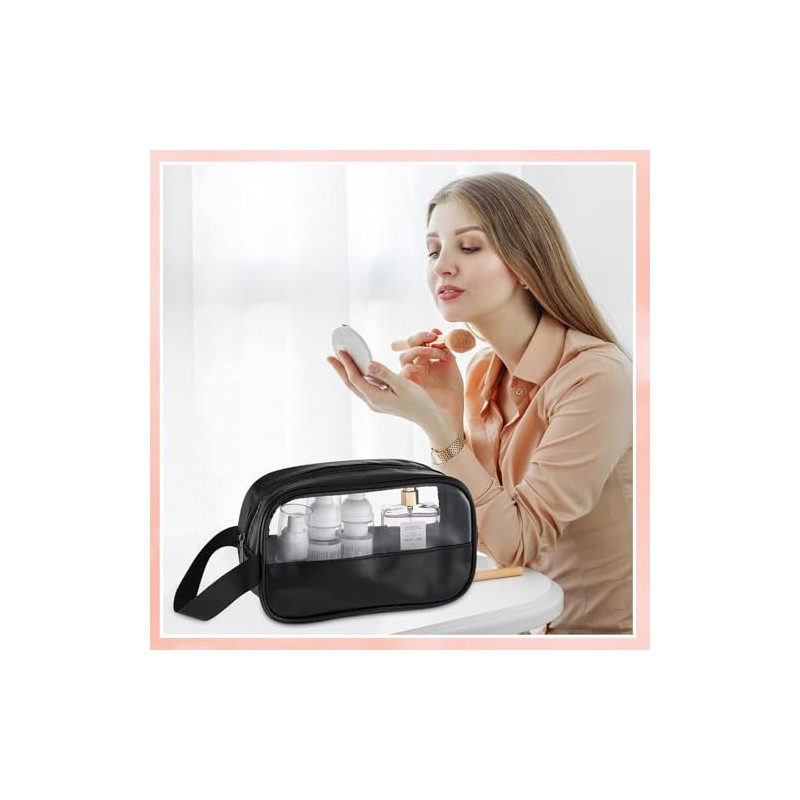 🌟 ⭐ GeorgeX Estuches de Viaje para Maquillaje Bolsa de Aseo Transparente con Cierre, Organizador de Maquillaje Portátil(Negro) ⭐ 🌟