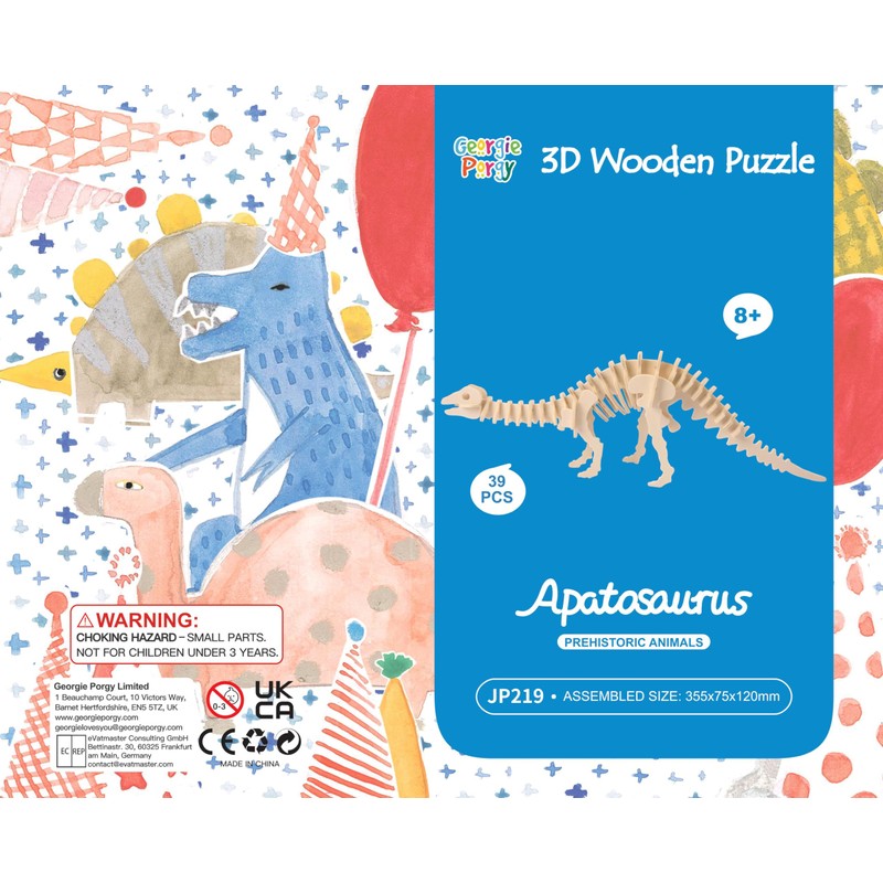 Georgie Porgy Wooden 3D Puzzle Collection Puzzle Model Kit Building Kit Wooden Craft Children's Puzzle Toy Pack 3 (Parasaurolophus Apatosaurus Triceratops)