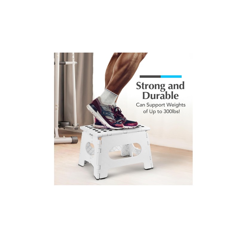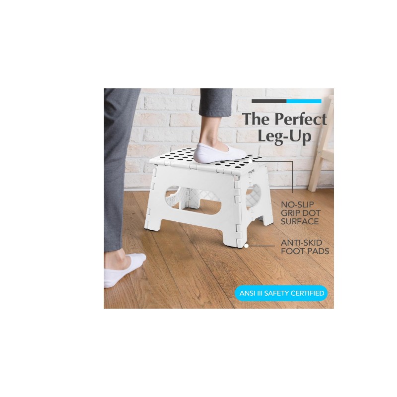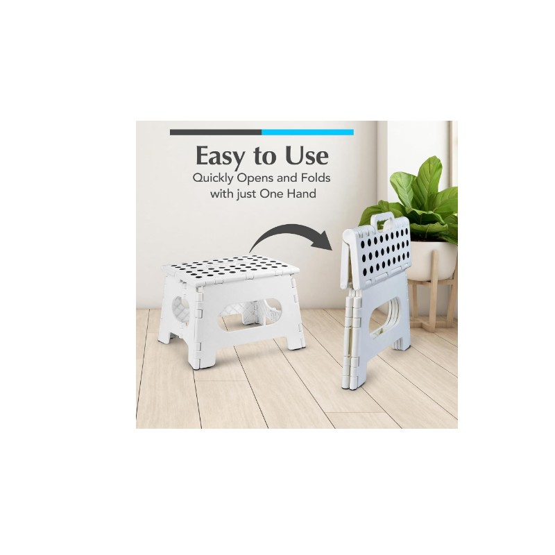 SPACE-SAVING DESIGN: Easy to fold and slim enough to fit in tight spaces, the folding stool is perfect for small apartments or cluttered homes. Store it in a drawer, between appliances, or even under the bed.