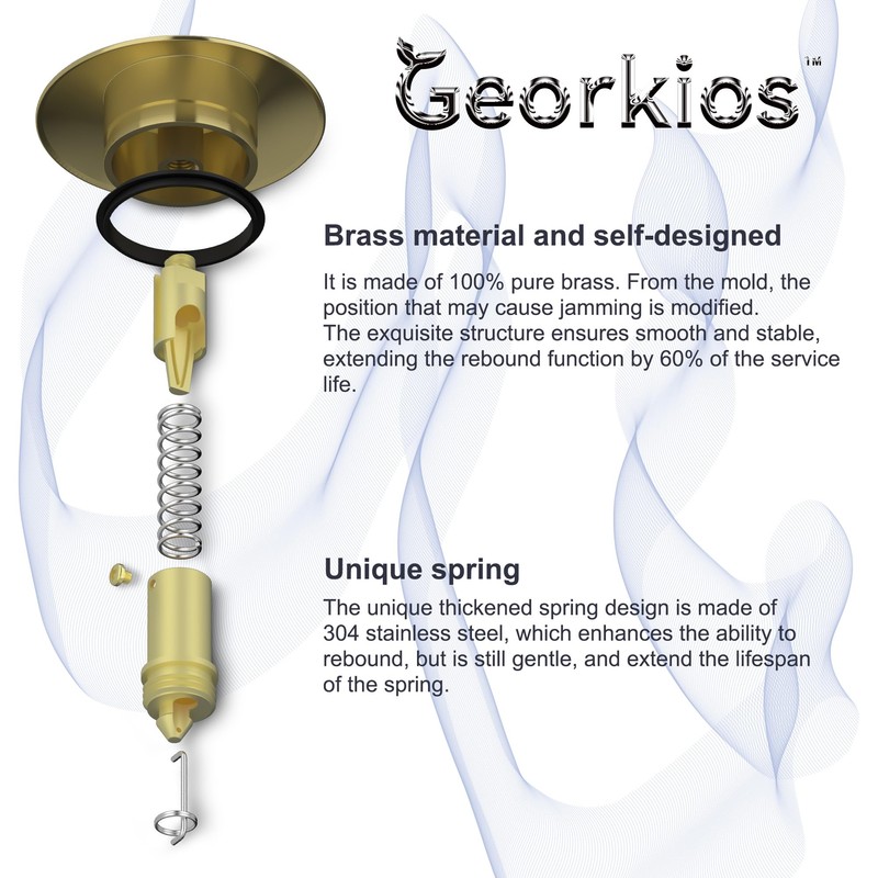 Georkios All Metal Brushed Gold Up Drain with Overflow, Rustproof Heavy Duty Brass and 304 Stainless Steel Vessel Lavatory Vanity Bathroom Sink Drain Stopper