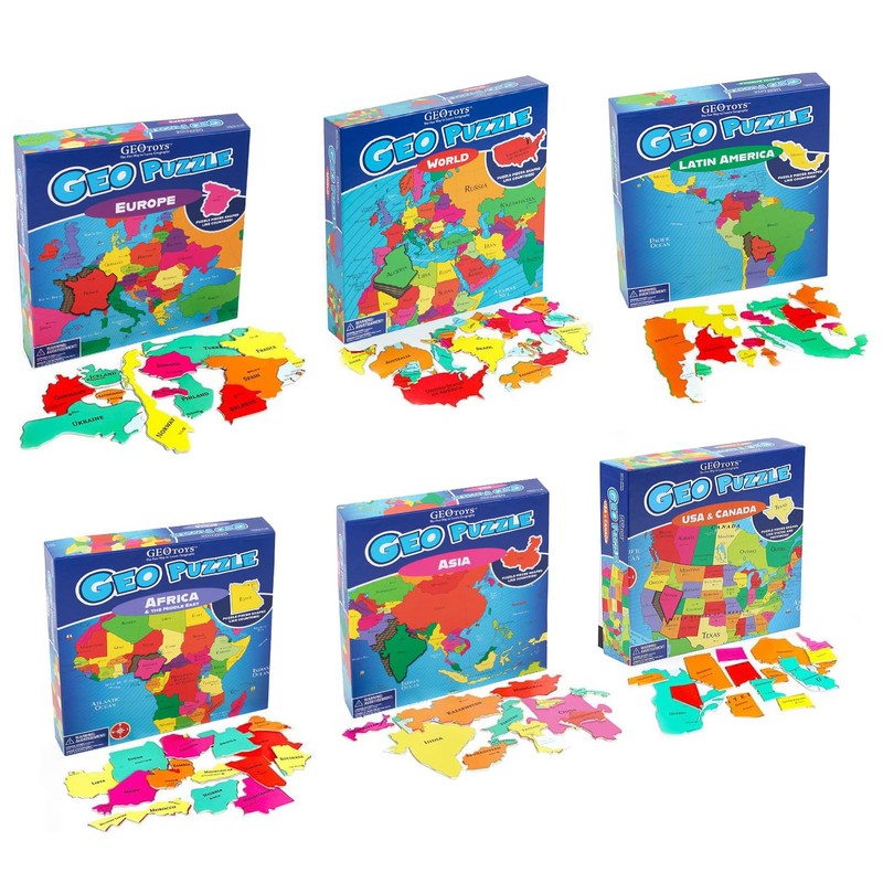 - VARIETY OF UNIQUE PUZZLES | Children will learn about the unique countries of our world. Included are GeoPuzzle World, GeoPuzzle USA and Canada, GeoPuzzle Europe, GeoPuzzle Latin America, GeoPuzzle Asia and GeoPuzzle Africa.