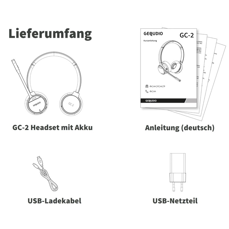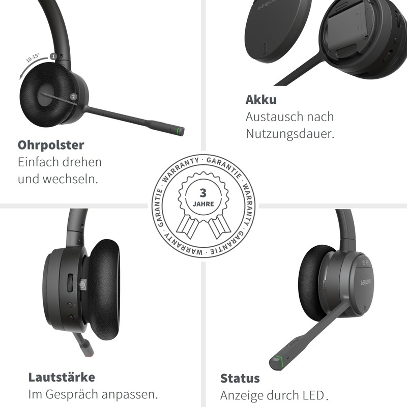 GEQUDIO GC-2 DECT Headset für FritzBox - Kabellos Telefonieren mit Anrufsteuerung am FritzFon – Duales Headset mit Bluetooth für PC und Smartphone - HD Audio (2-Ohr)