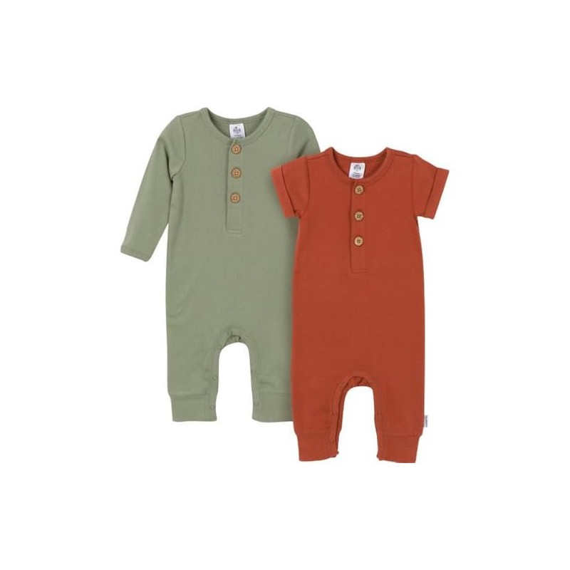 Gerber Baby Boys and Baby Girls' 2-Pack Long Leg Romper, Rust Olive, 12 Months