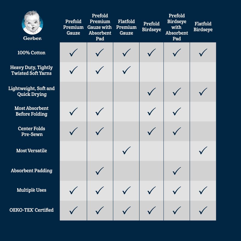 Gerber Unisex Baby Boys Girls Birdseye Flatfold Cloth Diapers Multipack White 10 Pack