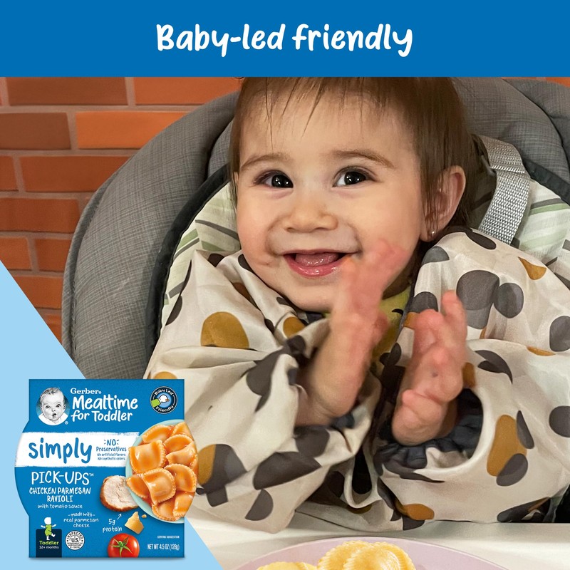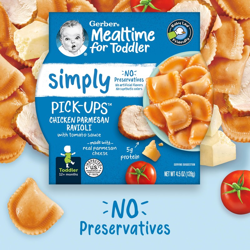 Gerber Pick-Ups Chicken and Parmesan Cheese Ravioli in Tomato Sauce Toddler Meals, 4.5 Oz Tray (Pack of 8)