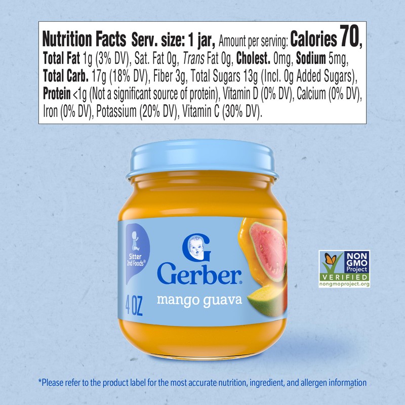 - CONVENIENT BABY FOOD: Our Gerber Mango Guava Baby Food Jar is designed for ease and convenience. These jars of baby food are made in a portable and easy-to-store format for busy parents