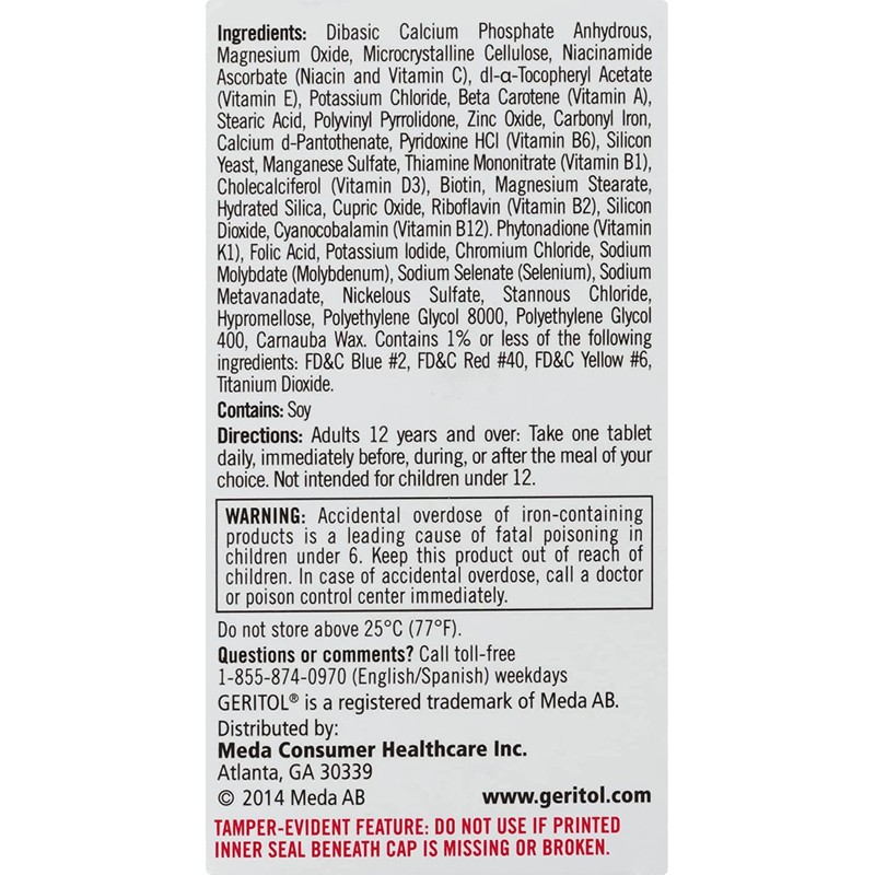Geritol Multivitamin Nutrition Support Tablets. The well-balanced multivitamin. Geritol multivitamin is specially formulated with just the right vitamins in just the right amounts so you can feel your best! Energy support from essential B-vitamins. Immune system support from antioxidants. Bone health support from Vitamin D. Geritol delivers just the right balance of key vitamins and minerals.