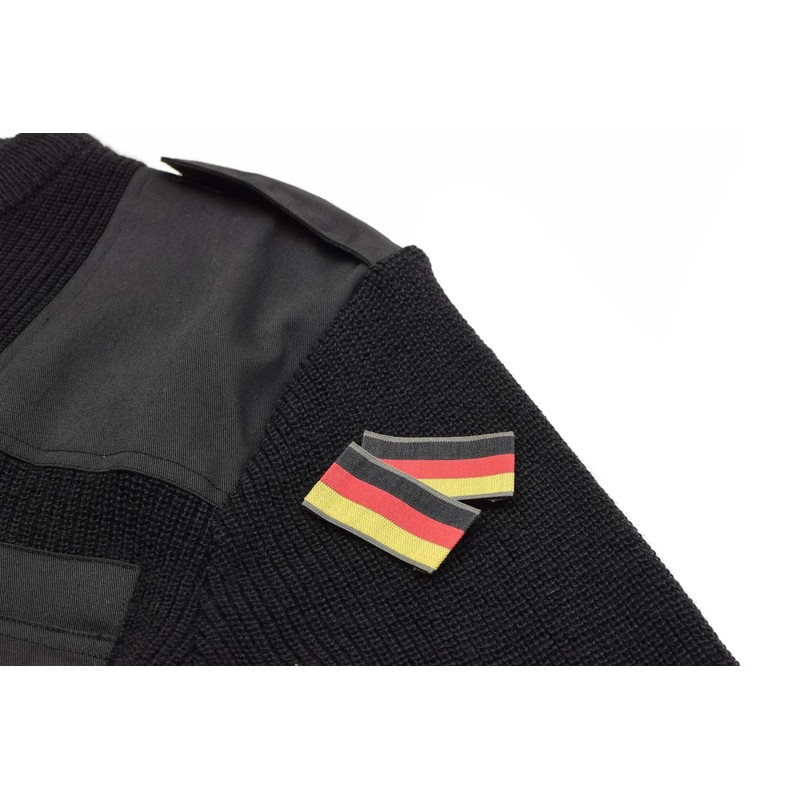 With its sharp, precision cut, authentic German military detailing, and reinforced design, this tactical sweater stands in a league of its own among men's sweaters. A classic deep black color paired with a signature round collar and rib knitted neck, cuffs, and waistline gives the wearer of this sweater a sleek military style that screams quality. As a genuine German army reproduction, this sweater with epaulets and German flag patches retains all the original details of the first production of this sweater.