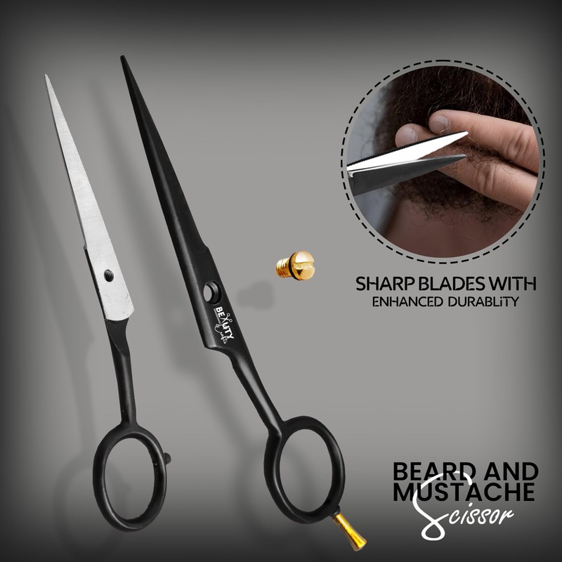 - Premium Quality: Our Beard and Mustaches Scissors are made of Premium Quality German Steel, durable and hypoallergenic. Sharp Blades of our Mustaches scissors work well with any type of facial hairs thick or thin. Its high-quality material is rustproof.