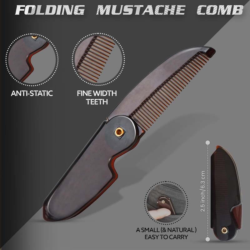 - Includes Folding Comb with Carrying Pouch: This Professional folding comb for mustache comes with a beautiful pouch to carry everywhere easily it also provides safety, it is great for travel. Mustache’s comb helps to shape your mustaches as you like. With the help of this all-in-one beard grooming kit, you can give yourself a professional cut at home.Folding feature helps you to carry this comb everywhere while traveling.