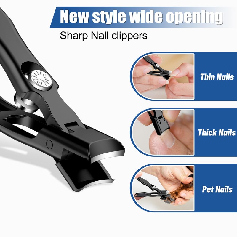 - WIDE JAW OPENING DESIGN: Specifically designed for thick toenails - our toenail clippers boast a generous 180-degree jaw opening, effortlessly tackling tough, thick nails and toenails with precision and ease.