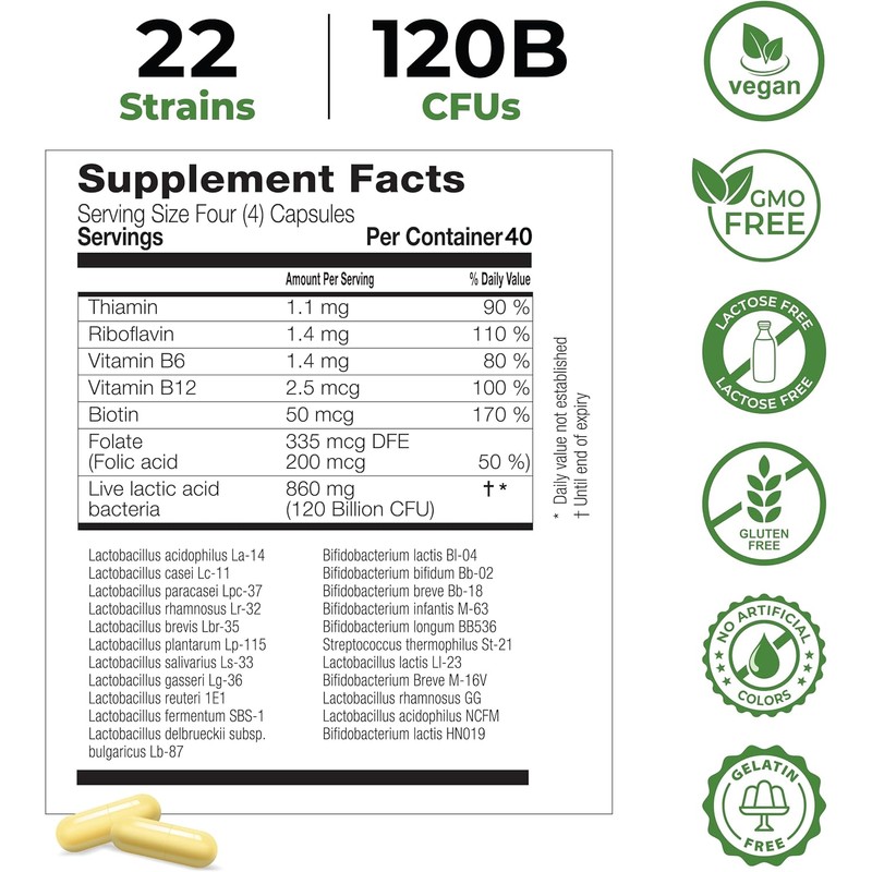 - DOCTOR FORMULATED - Our organic probiotics feature 22 strains of live lactic acid bacteria cultures and a range of beneficial B vitamins. These elements collaborate to enhance your stomach flora and promote regularity in your life. Containing a lactobacillus and bifidobacterium blend, each target release capsule resists stomach and bile acids, ensuring a higher potency of cultures that actively support your immune system.