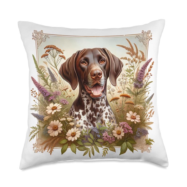 German Shorthaired Pointer Dog Summer Wildflowers Artwork Throw Pillow