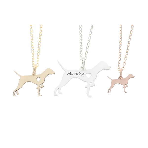 German Shorthaired Pointer Necklace - IBD - Personalize Name Date - Pendant Size Options - Sterling Silver 14K Rose Gold Filled Charm