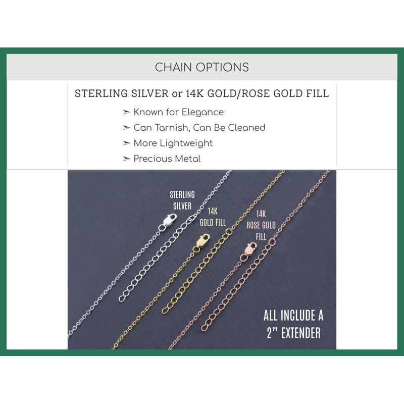 - Sterling Silver, 14K Gold Filled, or 14K Rose Gold Filled