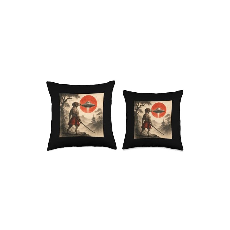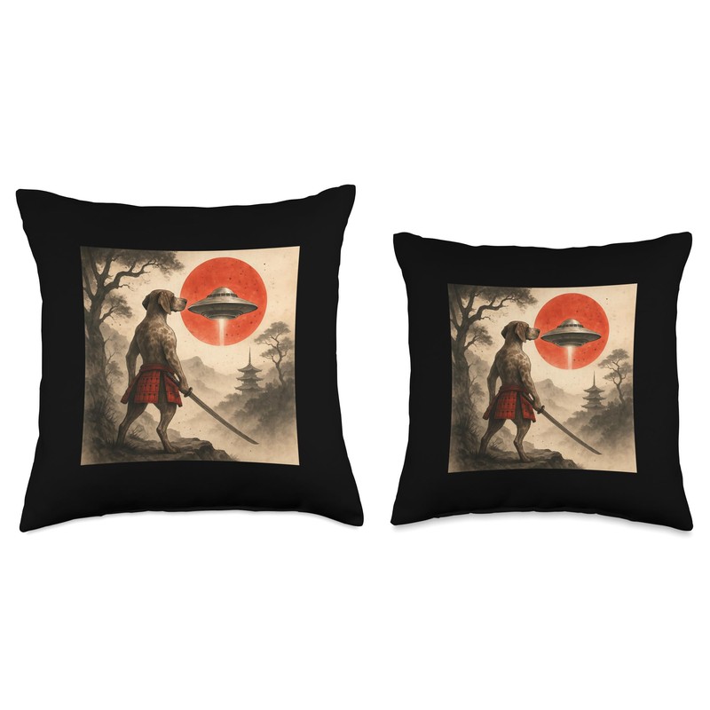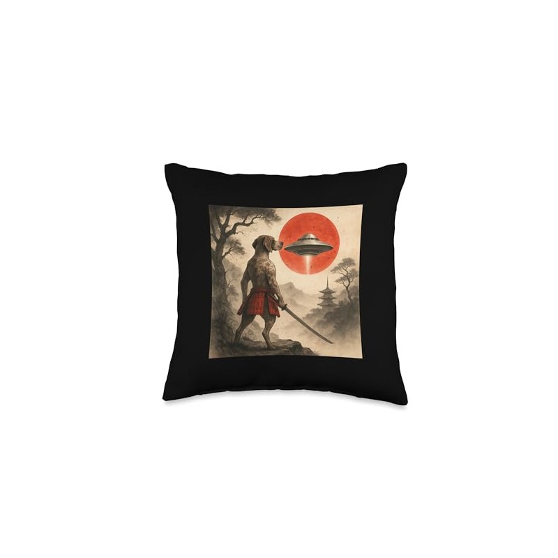 German Shorthaired Pointer Samurai UFO Japanese Ukiyo-e Dog Throw Pillow