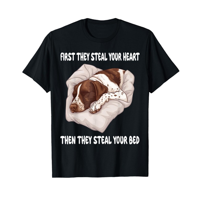 - Funny German Shorthaired Pointer First they steal your heart then they steal your bed design Clothing for women, men & kids.