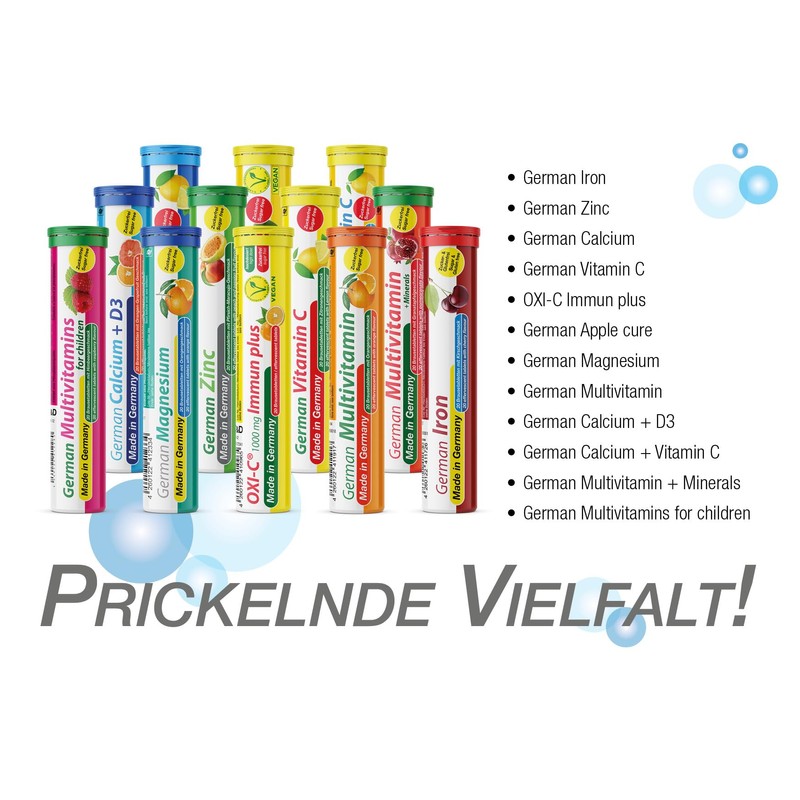 By the way, did you know that about 30% of Germans consume less vitamin C with food than recommended by nutritional scientific societies. This is even more true if there are not enough fresh fruit and vegetables available. German vitamin C closes this supply gap without an overdose, as with some other preparations.