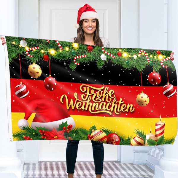 Germany Christmas Flag 90 x 150 cm with Eyelets - Christmas Flag Merry Advent - Germany Flag - Flag Christmas - Double Stitching