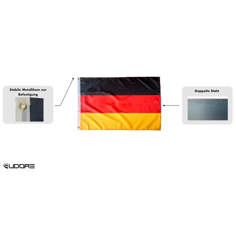 - Easy to attach: the flag is equipped with two sturdy metal eyelets for hoisting or for other attachment of the German flag